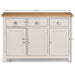 An elegant Sideboard, presented in an immaculate painted, soft Elephant Grey finish with beautiful pale oak top, crafted from a combination of high grade White Oak solids and veneers. This stylish piece looks beautiful and offers phenomenal storage for kitchen, living or dining room. Includes three practical drawers above a double and single cupboard space, accented with chic cupped handles in a brushed steel finish; ideal for cutlery , crockery and glassware. The combination of superior quality materials and classic design ensures a timeless appeal and fits perfectly alongside both traditional and contemporary decor.